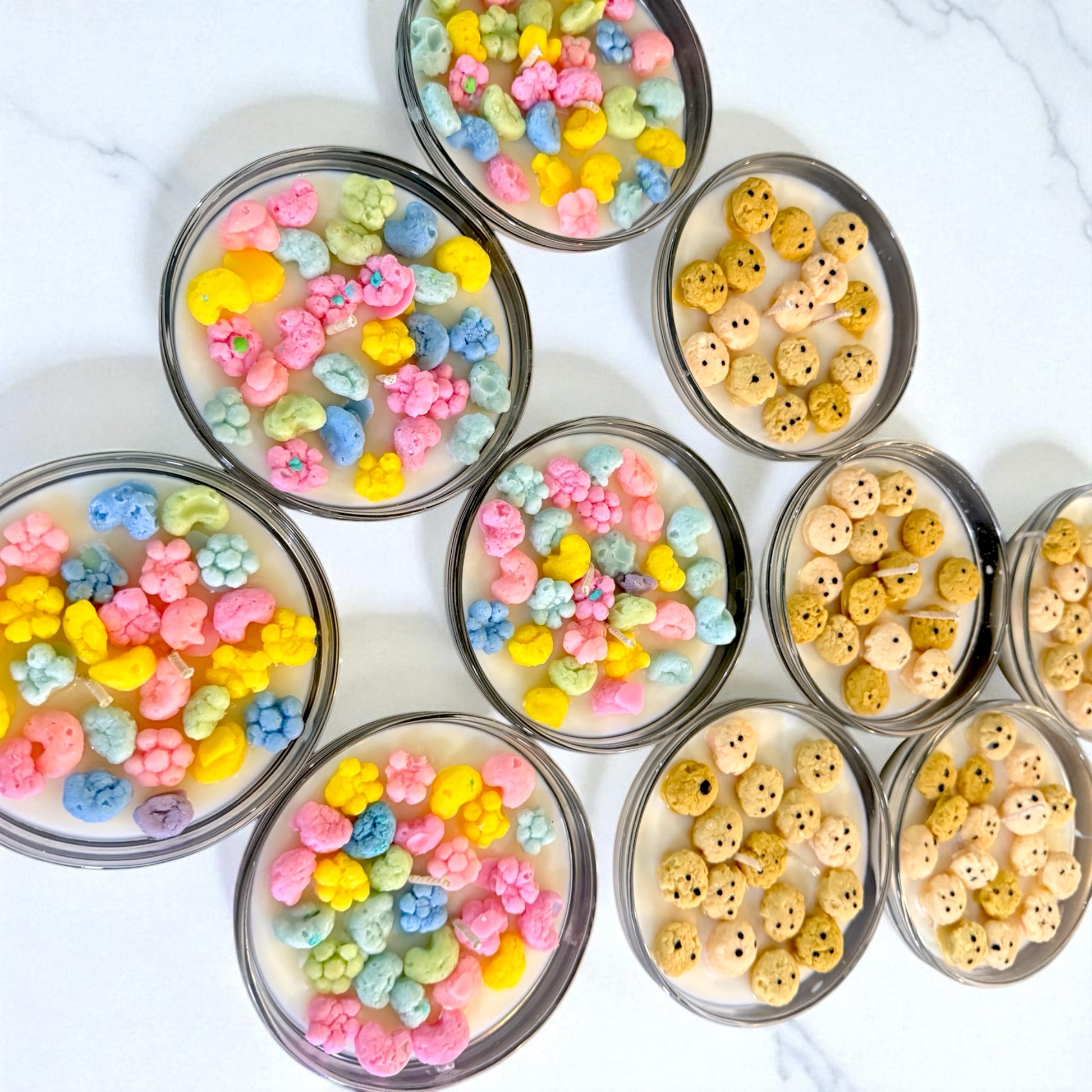 Indulge in luxury with our Soy Candle themed in a cereal bowl! Made with natural soy wax, this candle looks and smells just like your favorite breakfast cookie cereal. Light it up and surround yourself with the comforting scent of nostalgia.